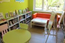 Низкие стеллажи в детской зоне для самостоятельного доступа маленьких читателей