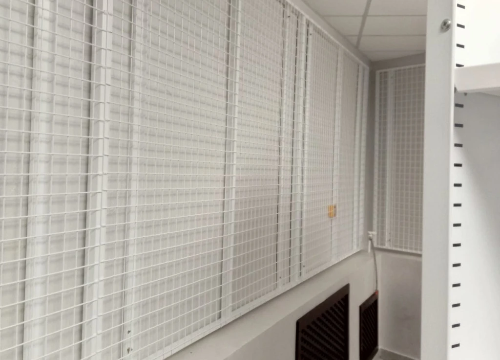 Выкатные сетки для хранения картин и других экспонатов снижают риск повреждения предметов при хранении. Экспонаты подвешиваются на специальные крючки. Кронштейны используются для размещения картин небольшого размера или икон. Выдвижная сетка способствует циркуляции воздуха.
